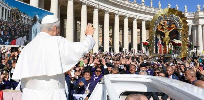 EL VATICANO.- El sumo pontífice León XIV impartió su bendición a la efigie del Señor de los Milagros durante la jornada del domingo 19 de octubre, tras oficiar la misa de elevación a los altares de siete beatos en la Plaza de San Pedro, sede del Vaticano. La copia del Cristo de Pachacamilla recorrió en … Sigue leyendo Papa León XIV bendijo este domingo imagen del Señor de los Milagros en el Vaticano