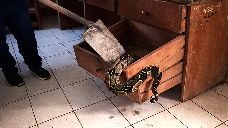El incidente se desencadenó luego de que los trabajadores notaran ruidos y movimientos inusuales provenientes del mueble. Al inspeccionarlo, descubrieron al reptil oculto en su interior.
