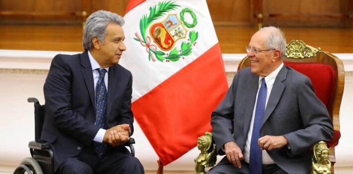 Los jefes de Estado de Perú, Pedro Pablo Kuczynski, y de Ecuador, Lenín Moreno, presidirán hoy en Trujillo, región La Libertad, el XI Gabinete Binacional para abordar temas referidos a su agenda común, organizado en cinco ejes temáticos. Previamente, ambos presidente sostendrán un encuentro privado en el cual revisarán la agenda bilateral y los objetivos … Sigue leyendo Perú y Ecuador abordan hoy agenda común en XI Gabinete Binacional