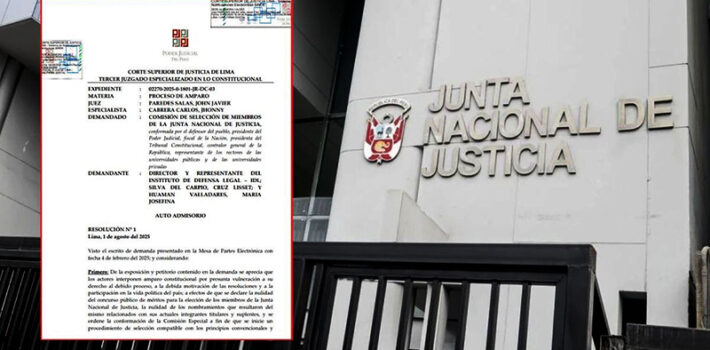 El Tercer Juzgado Especializado en lo Constitucional de la Corte Superior de Justicia de Lima ha admitido una demanda de amparo que busca invalidar el proceso de selección de los miembros de la Junta Nacional de Justicia (JNJ), anular los nombramientos actuales y proceder con una nueva convocatoria. Como parte de esta decisión, el Poder … Sigue leyendo PJ admite demanda de amparo para anular proceso de selección de miembros de JNJ