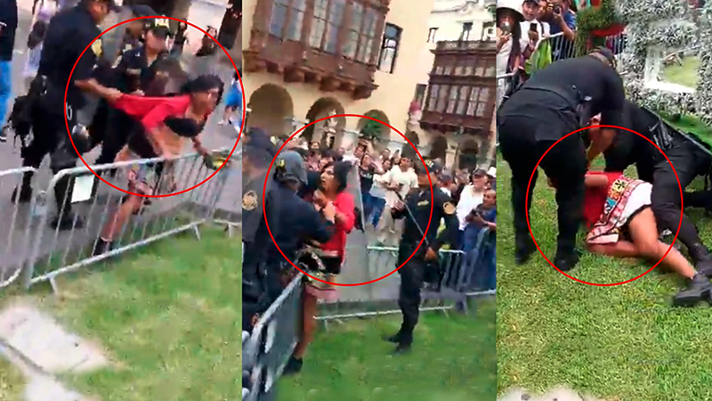 Policia agrede brutalmente a la activista Gahela Cari. En plena Plaza de Armas, fue golpeada y detenida. Ah pero con los delincuentes se orinan pic.twitter.com/b96AtDlZ9Z