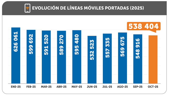En octubre, un total de 538 404 líneas móviles cambiaron de empresa operadora, a nivel nacional, a través del mecanismo de portabilidad numérica, informó el Organismo Supervisor de Inversión Privada en Telecomunicaciones (OSIPTEL).