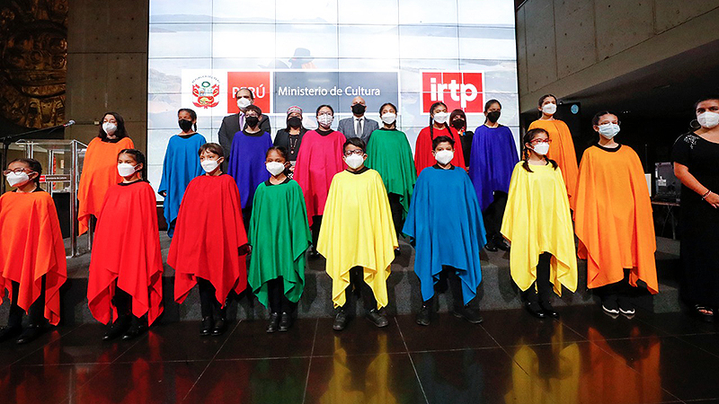 El ministro de Cultura, Alejandro Salas Zegarra, presentó esta mañana la versión del Himno Nacional del Perú, cantado por el Coro Nacional de Niños en español y cinco lenguas indígenas u originarias (quechua, asháninka, aimara, shipibo-konibo y awajún), e interpretado por la Orquesta Sinfónica Nacional.