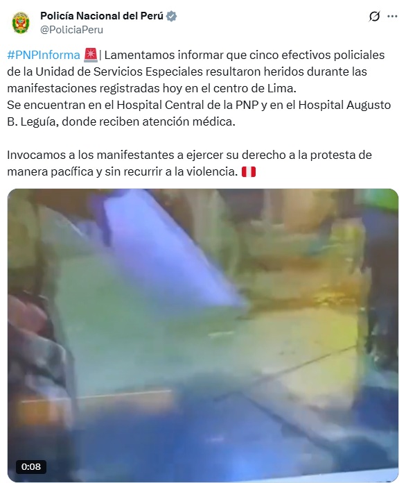 A las 21: 50 de la noche el jefe de Estado, José Jerí, se acercó al puesto de mando de la PNP ubicado en la avenida Abancay, cerca del Congreso, para conocer el estado de salud de los heridos. Llegó sorprevisamente caminando desde el Palacio de Gobierno por el jirón Junín y retornó de forma rápida luego hacia la sede del Poder Ejecutivo.
