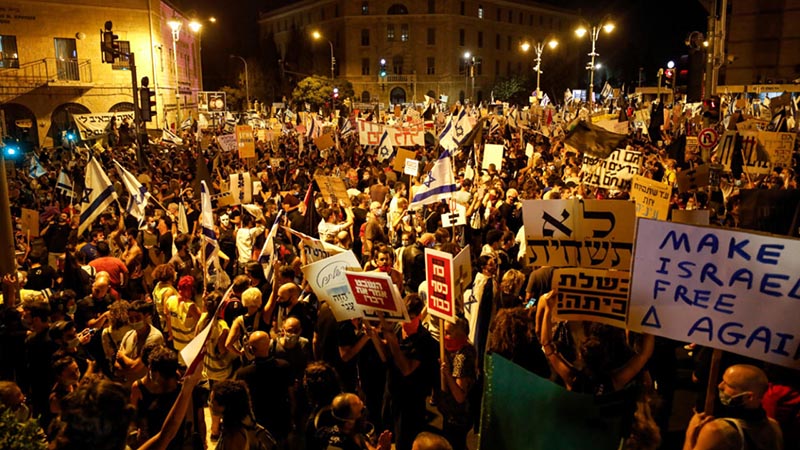 JERUSALÉN.- Por undécimo sábado consecutivo, y en medio de una ola de calor en Israel, miles de israelíes pidieron la dimisión del primer ministro, Benjamín Netanyahu, procesado por corrupción y que no consigue parar la segunda ola de coronavirus que tiene al país en vilo.