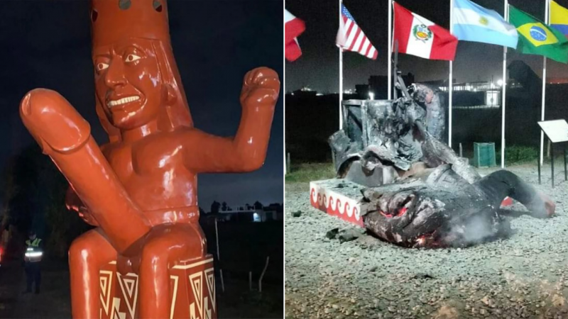 El huaco de la fertilidad de la cultura Moche, instalado en la ciudad de Trujillo, fue prendido en fuego esta madrugada por delincuentes, según reportó Arturo Fernández, alcalde de la localidad.