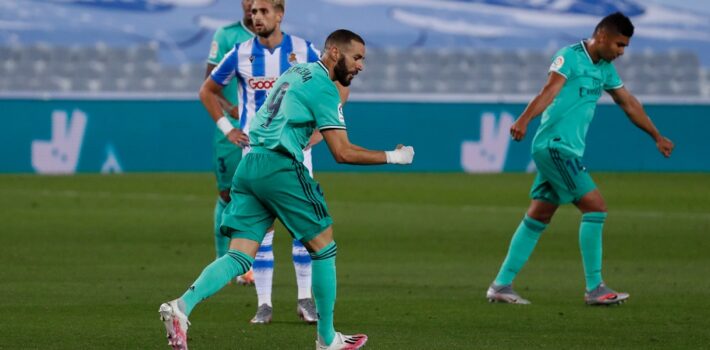 Real Madrid se impuso 2-1 a Real Sociedad por la fecha 30 de la Liga Santander. Sergio Ramos (49′) y Karim Benzema (70′) anotaron para la Casa Blanca y Mikel Merino (83′) descontó para el dueño de casa. El resultado coloca a Real Madrid en lo más alto de la tabla de posiciones al totalizar 65 … Sigue leyendo Liga Santander: Real Madrid alcanza la punta al vencer 2-1 a Real Sociedad