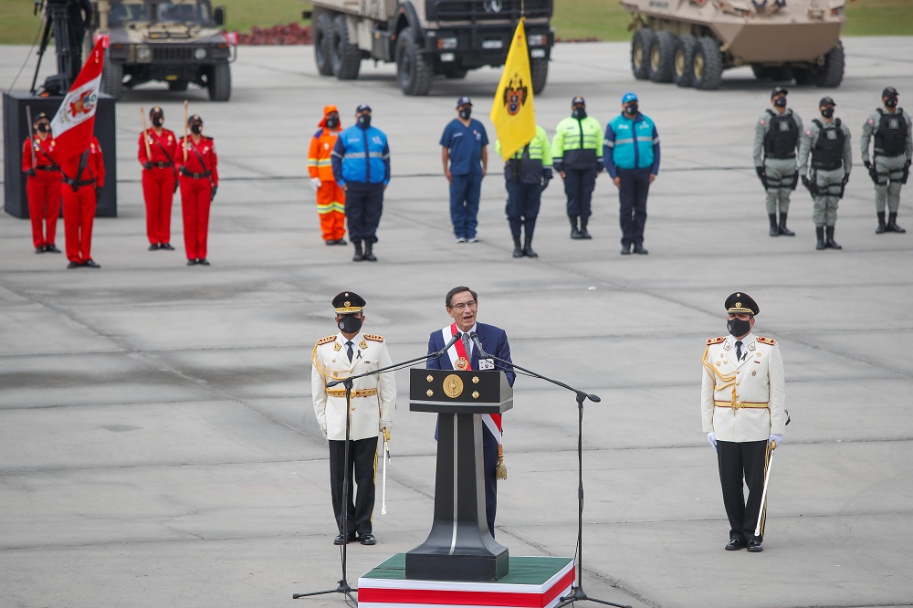 “Todos, desde sus trincheras, han contribuido y contribuyen a esta cruzada para proteger la vida y la salud de los peruanos. Por eso, al reconocer a las instituciones que luchan contra la pandemia, con la Orden Militar de Ayacucho, la máxima distinción castrense y símbolo de la gloriosa batalla que selló nuestra independencia, queremos agradecerles en nombre de la patria por su abnegada labor. Detrás de estas instituciones hay miles de personas, funcionarios, trabajadores, que cumplen esforzadamente su misión; y lo hacen con dedicación y responsabilidad”, resaltó el jefe del Estado.