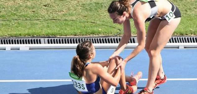 Después de unos segundos retorciéndose de dolor sobre la pista, el instinto de solidaridad surgió de lo más profundo de sus corazones. D’Agostino ayudó a su rival a incorporarse y ambas se fundieron en el abrazo del consuelo en medio de la desgracia.