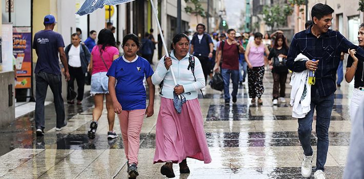 Una llovizna de intensidad considerable sorprendió la mañana del jueves 10 de agosto a diferentes distritos de Lima Metropolitana. Según el Senamhi, este escenario podría repetirse en los próximos días debido a un fenómeno climático vigente en la costa peruana. Kelita Quispe, directora de Pronóstico Meteorológico del Senamhi explicó que la presencia de llovizna en … Sigue leyendo Senamhi explica a qué se debe que Lima Metropolitana amaneciera con llovizna