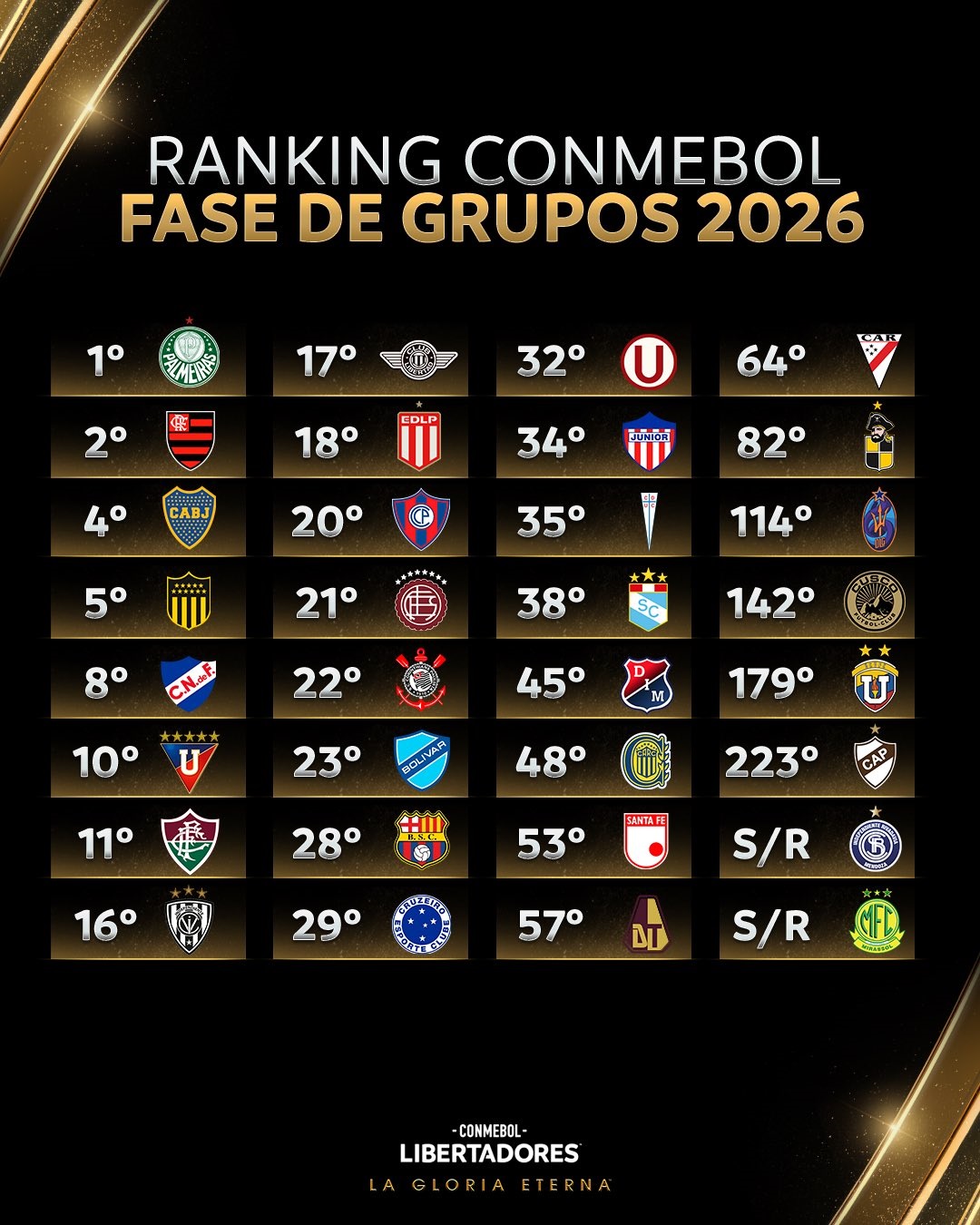La organización dividió a los clubes en cuatro sectores. El bombo 1 lo encabezan potencias como Flamengo, Palmeiras, Fluminense, Boca Juniors, Peñarol, Nacional, Liga de Quito e Independiente del Valle.