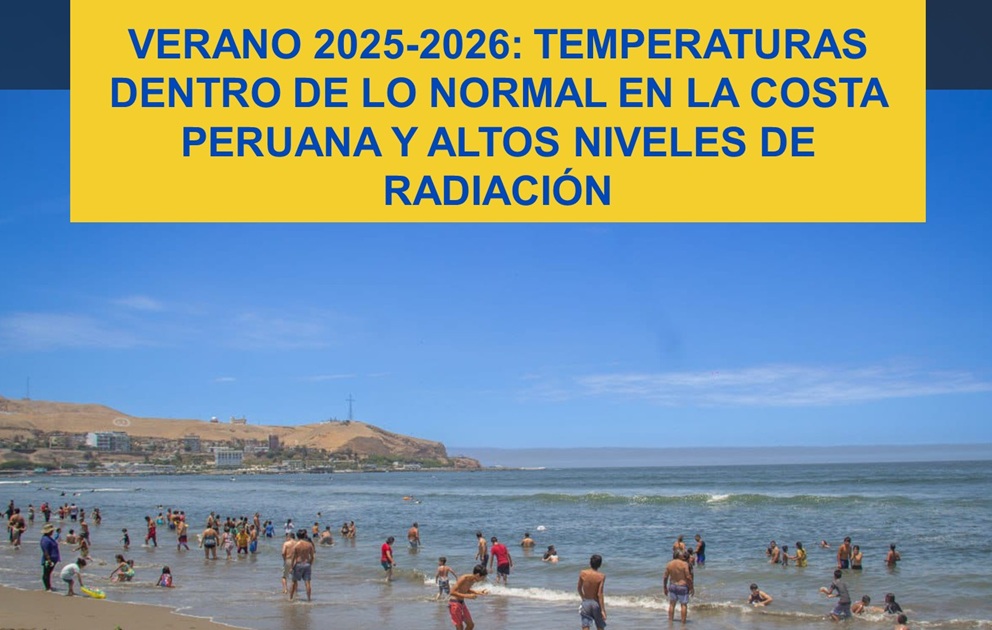 El Servicio Nacional de Meteorología e Hidrología del Perú (Senamhi), organismo adscrito al Ministerio del Ambiente, informa que durante el verano las temperaturas del aire se mantendrán, en general, dentro de sus rangos normales en gran parte del país, con algunos episodios de calor hacia el final de la estación.