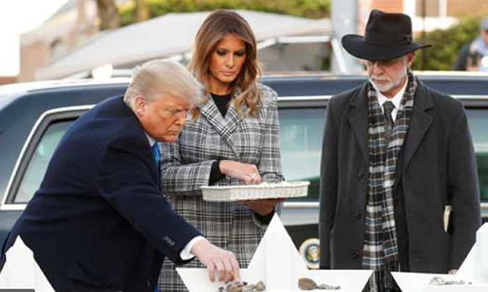 Trump y sus familiares pasaron unos 20 minutos dentro y fuera de la sinagoga, donde conversaron con un rabino y depositaron una rosa blanca y una pequeña piedra sobre cada una de las once estrellas de David erigidas frente al templo, en memoria de las víctimas de la matanza.